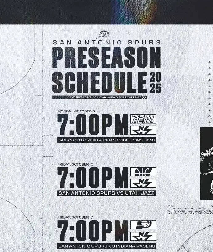北京时间2025年7月29日,马刺队官宣新赛季季前赛赛程,首战对阵CBA球队广州龙狮。